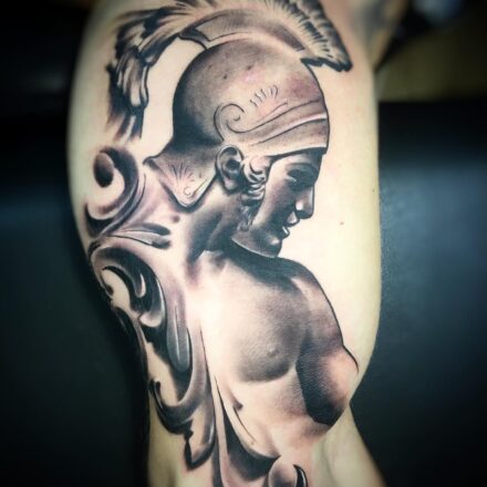 Tetování sparťanský bojovník na předloktí