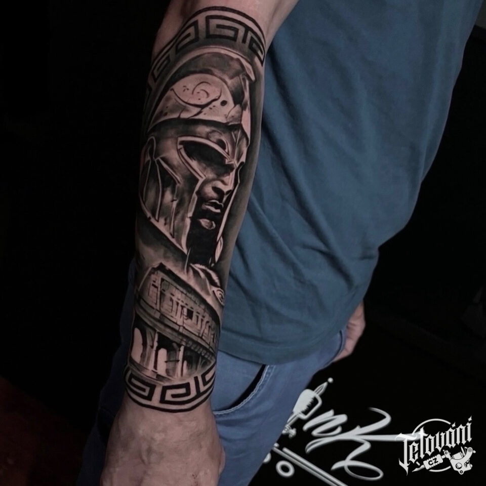 Tetování sparťanský bojovník na předloktí