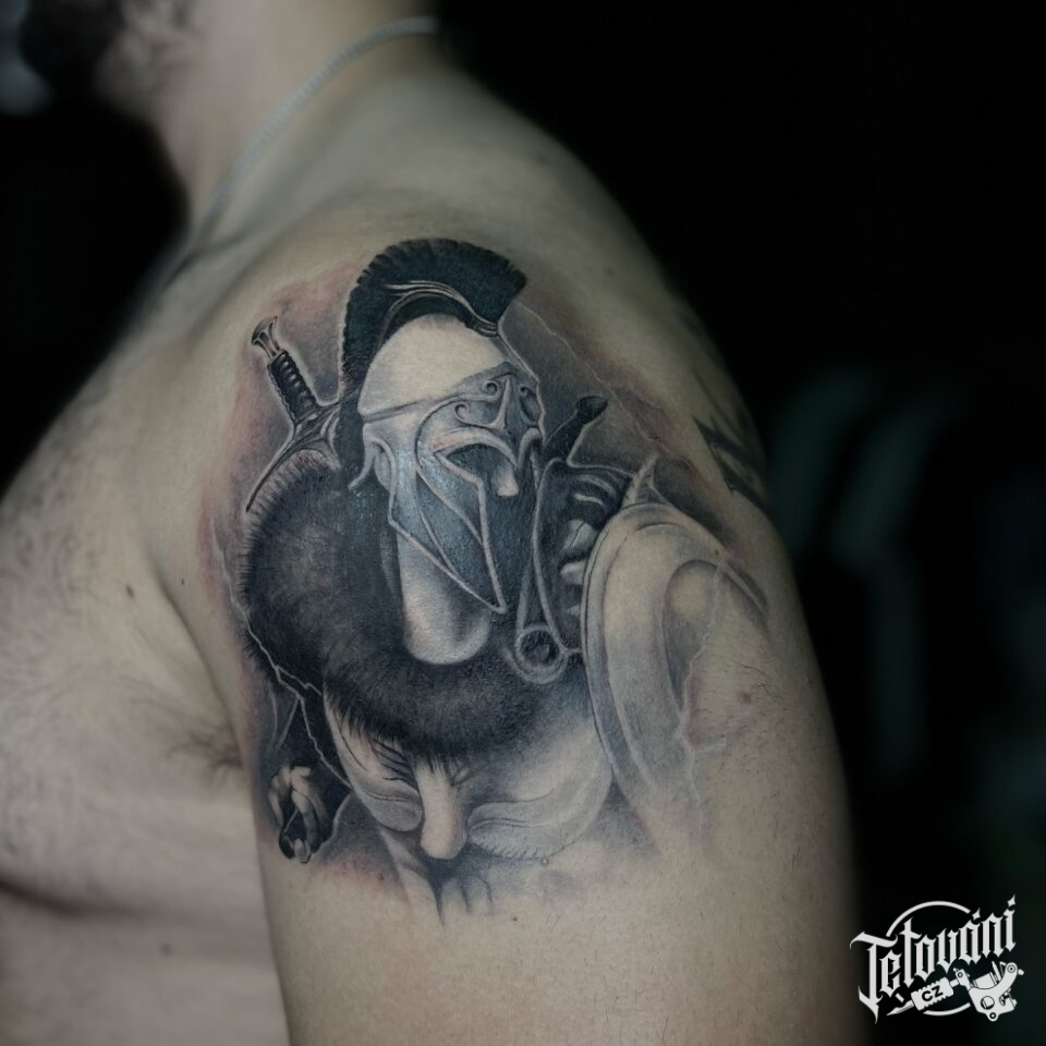 Tetování sparťanský bojovník na rameni
