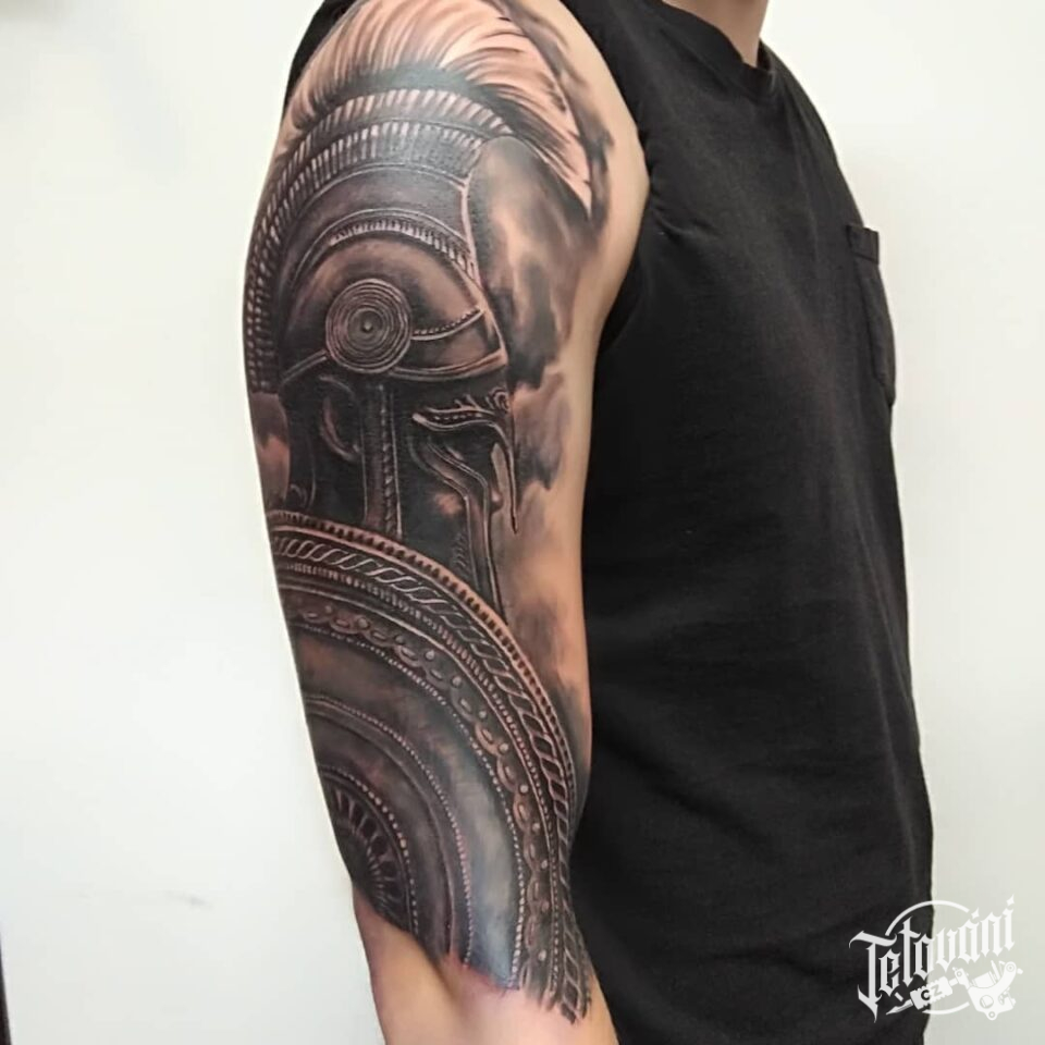 Tetování sparťanský bojovník na rameno