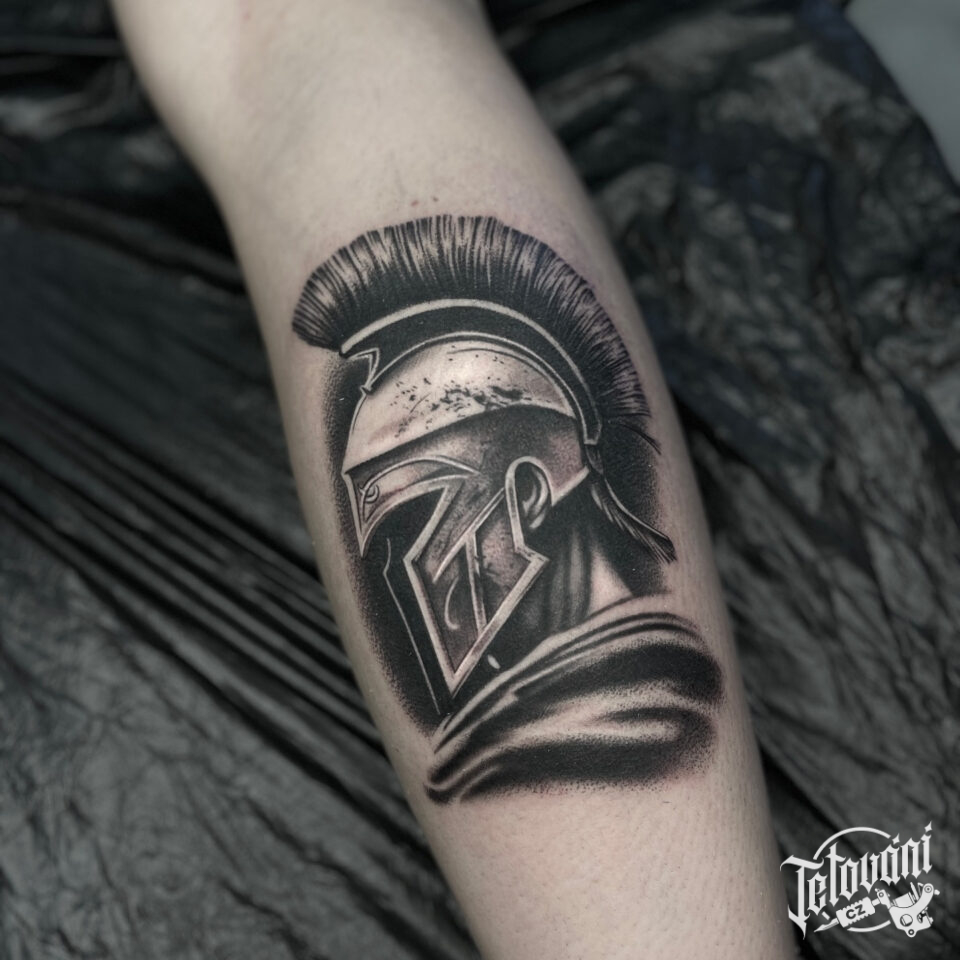 Tetování sparťanský bojovník, řecká mytologie na lýtko