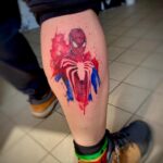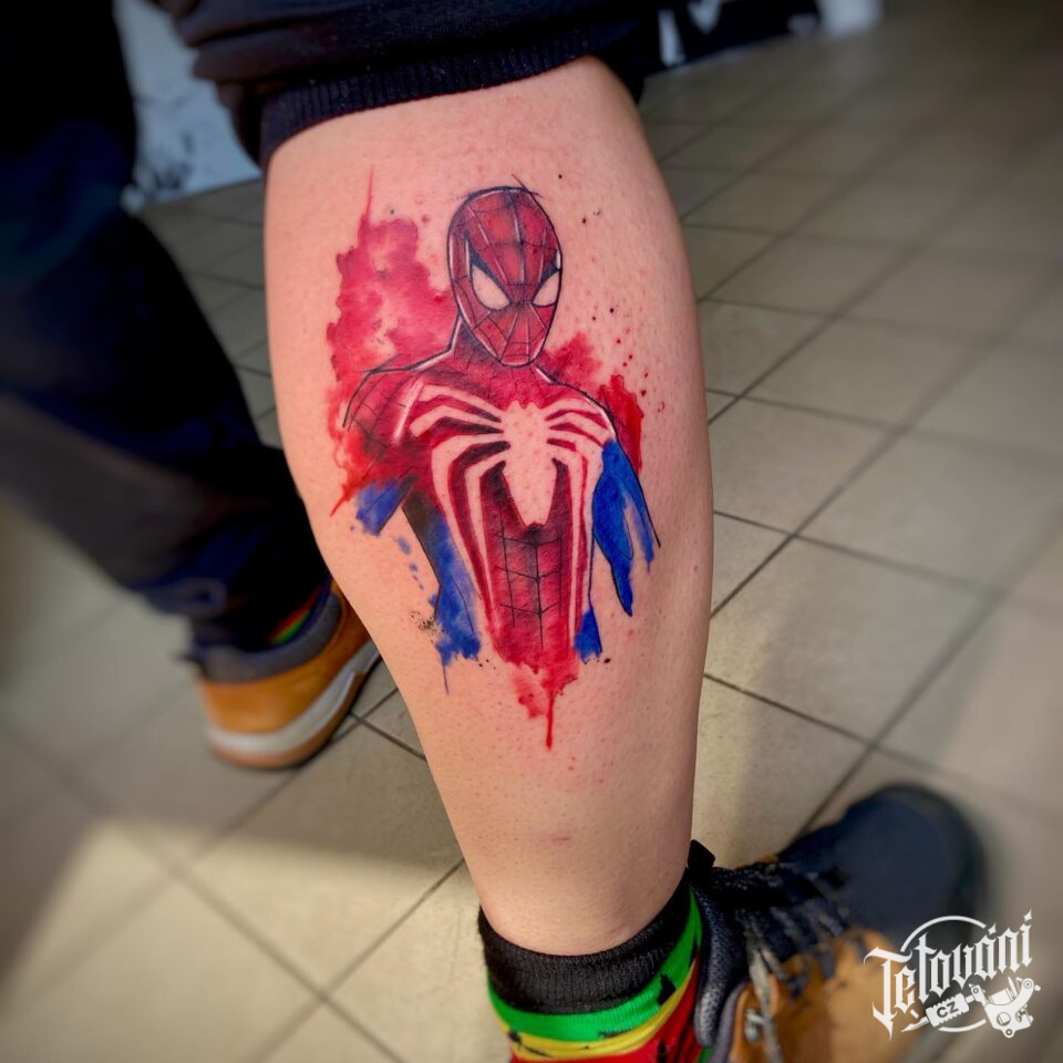 Tetování Spiderman z filmů a pohádek na lýtko