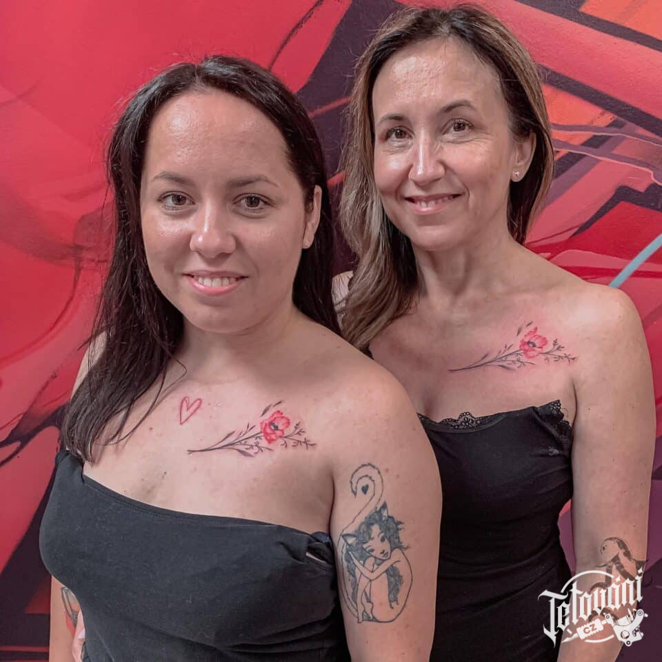 Tetování společná, pro sestry, pro matku a děti, květiny pod klíční kostí