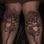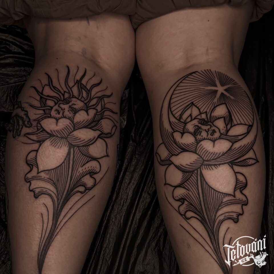 Tetování společná tetování, slunce, měsíc a květina na lýtko