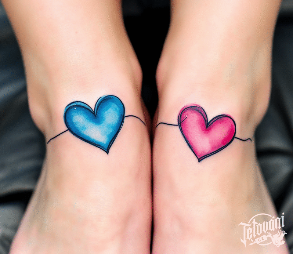 Tetování společné srdce pro páry na nárt