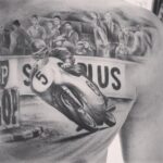 Tetování sport, dopravní prostředky, motorkář na hrudi