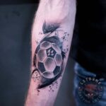 Tetování sport, fotbal a abstraktní čáry na předloktí