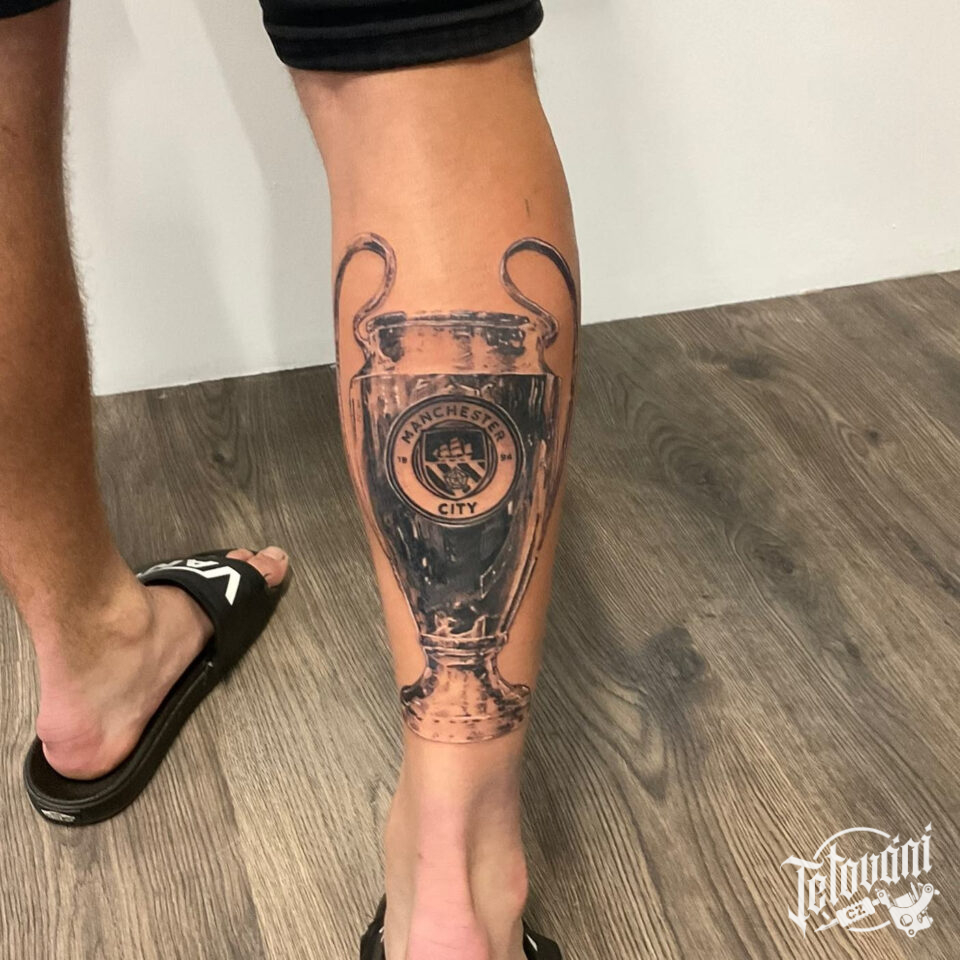 Tetování sport, fotbal, předměty, pohár na lýtku