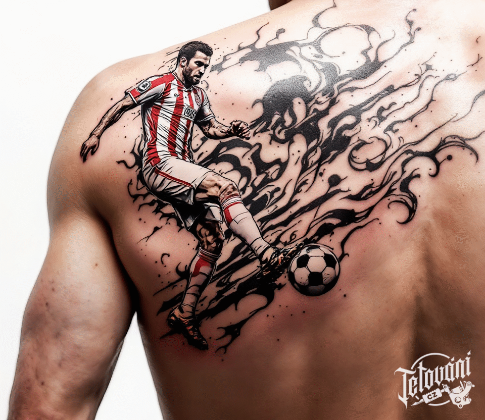 Tetování sport, fotbalista SK Slavia Praha na lopatce