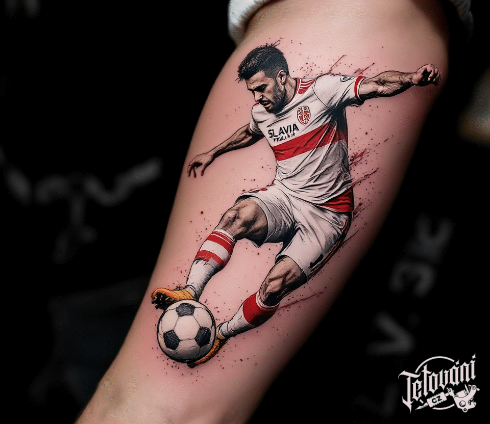 Tetování sport, fotbalista SK Slavia Praha na ruce