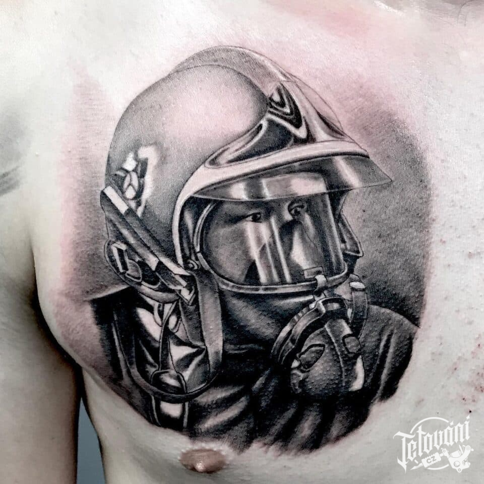 Tetování sport, hasič na prsu