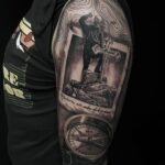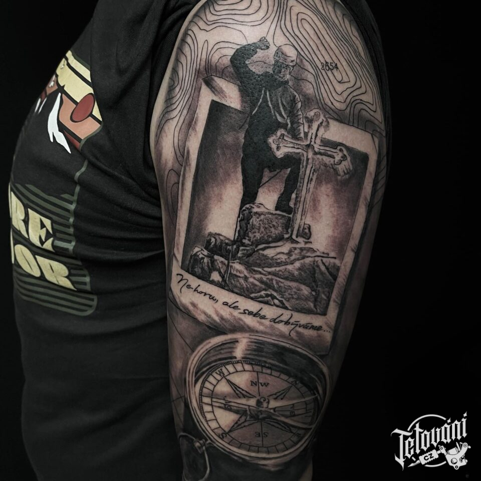 Tetování sport horolezectví, kompas, cestování, hory, příroda na rameno
