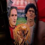 Tetování sport, osobnosti, fotbal, portréty, Maradona a Totti na stehně