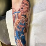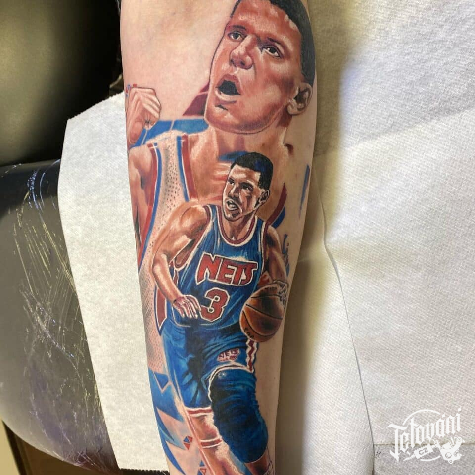Tetování sport, osobnosti, portrét, Dražen Petrovic na předloktí