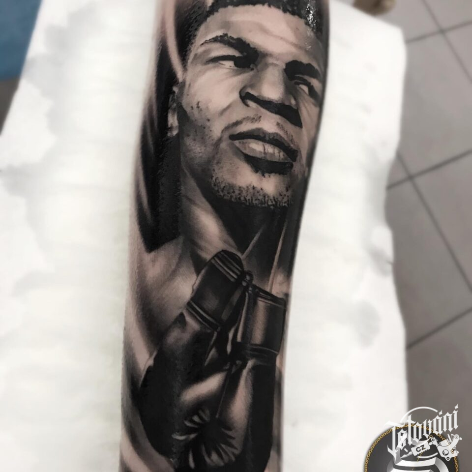 Tetování sport, portrét osobnosti, Mike Tyson na předloktí