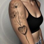 Tetování srdce a květiny na rameni