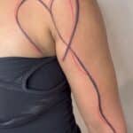 Tetování srdce a nápis na lopatce a rukávu