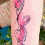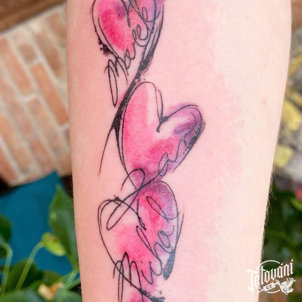 Tetování srdce a nápisy, jména na předloktí