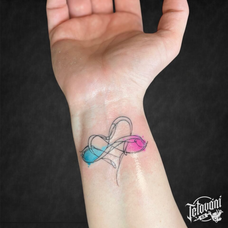 Tetování srdce a nekonečno, ležatá osmička na zápěstí