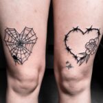 Tetování srdce a pavučina na stehna