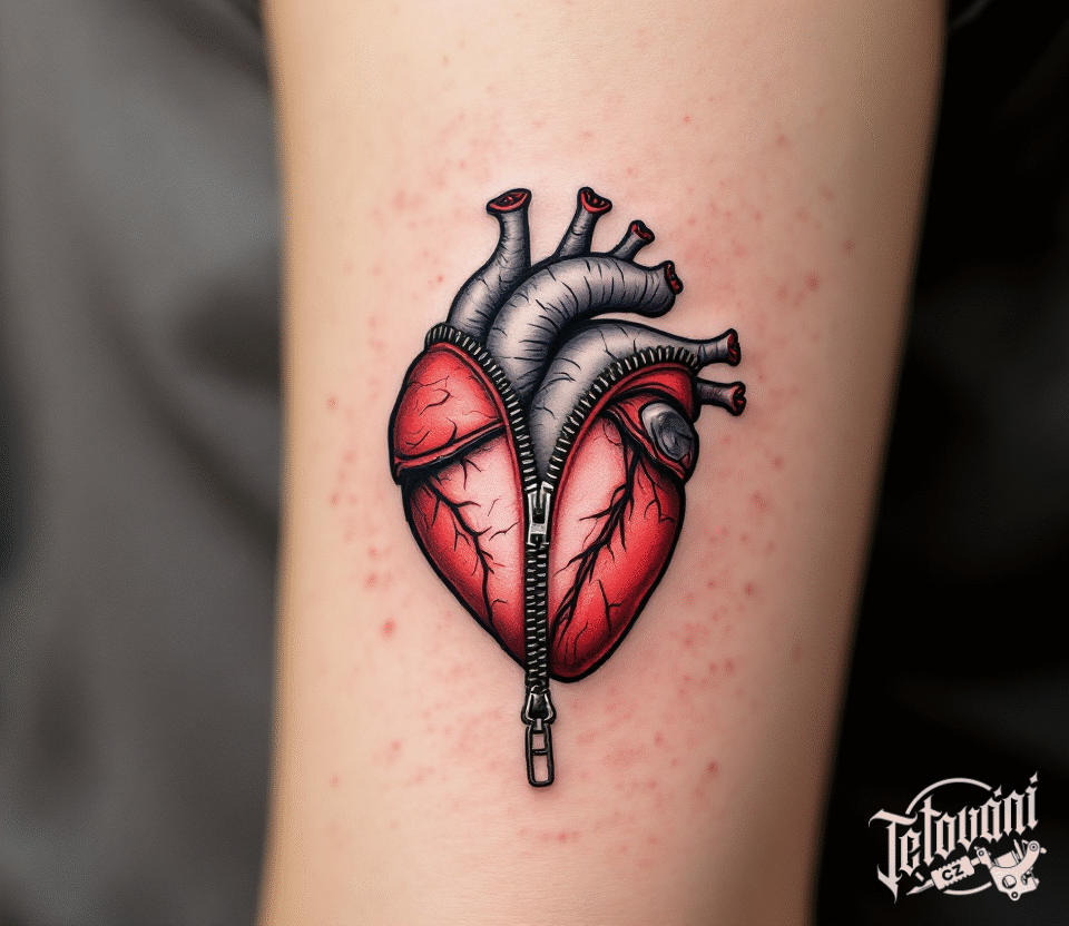 Tetování srdce a zip na r...