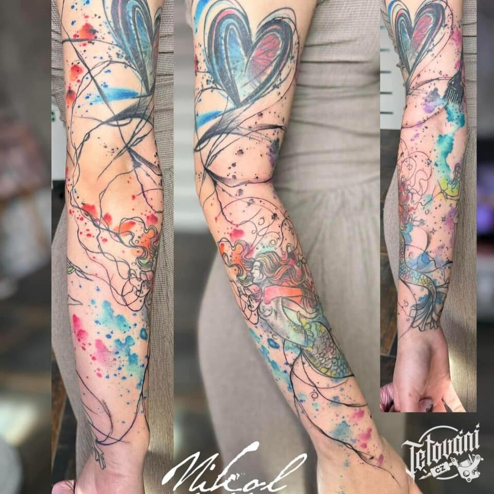 Tetování srdce, čáry, mořská panna