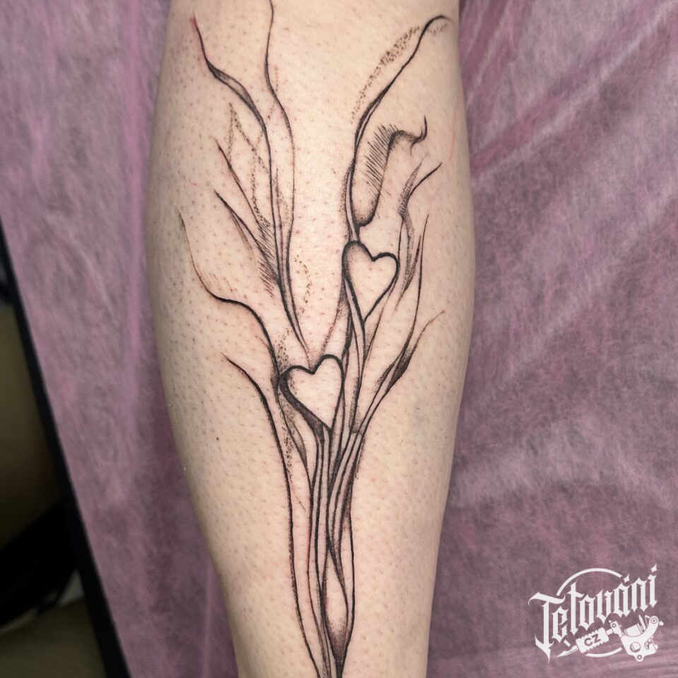 Tetování srdce, čáry na lýtko