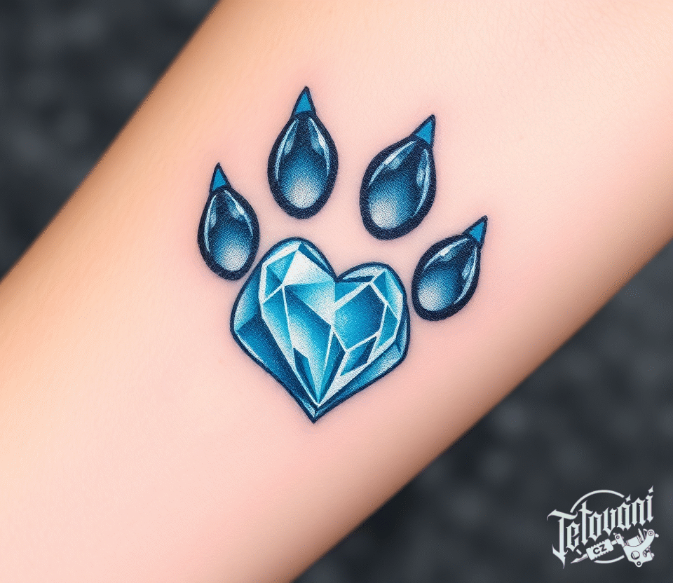 Tetování srdce, diamantová tlapka srdce na předloktí