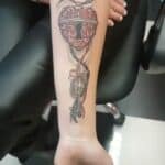 Tetování srdce, klíč na předloktí