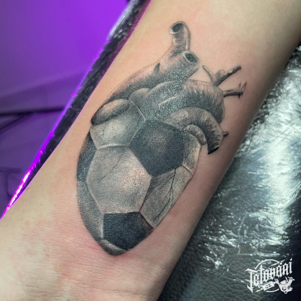 Tetování srdce, láska k sportu – fotbalu na zápěstí