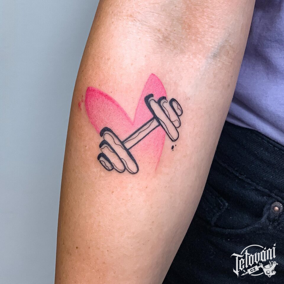 Tetování srdce, láska, znaky a symboly, činka na předloktí