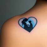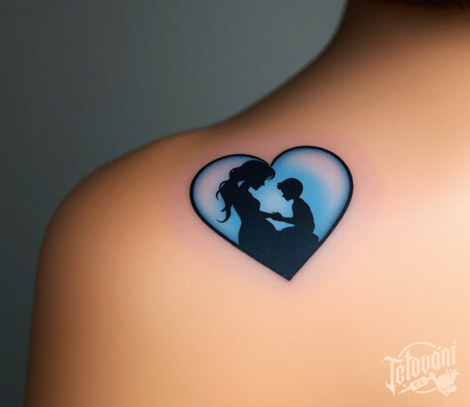 Tetování srdce, matka a dítě na lopatku