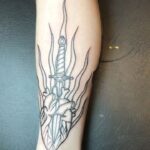 Tetování srdce, meč, symboly na předloktí