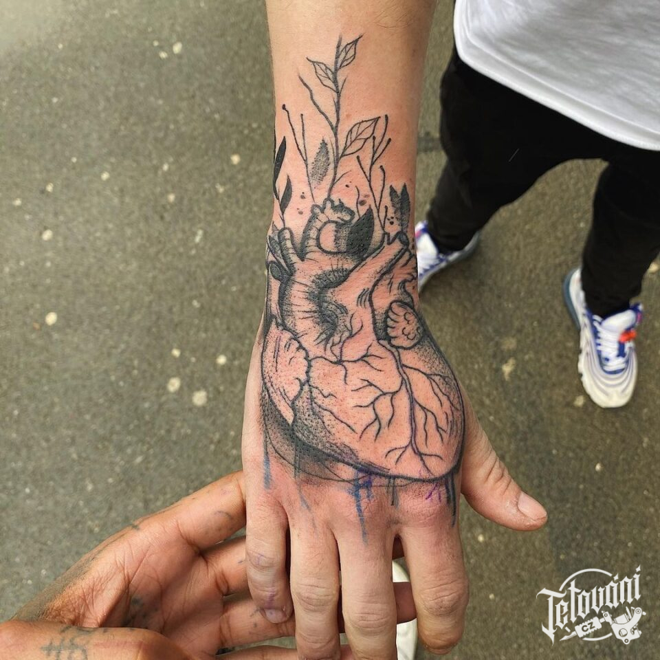 Tetování srdce na hřbetu ruky