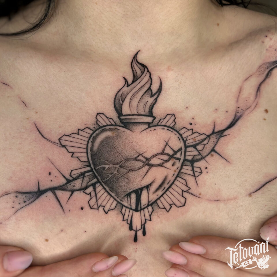 Tetování srdce na hrudníku