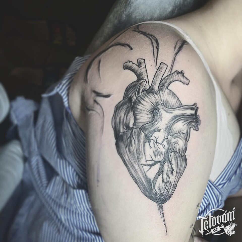 Tetování srdce na rameni