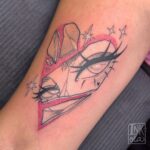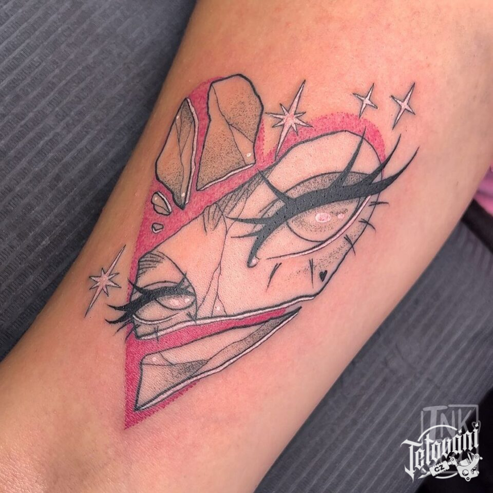 Tetování srdce, oči, hvězdy na paži