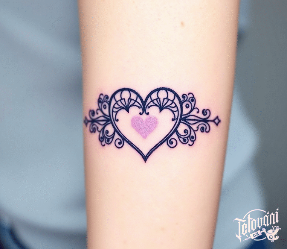 Tetování srdce, ornamenty na předloktí