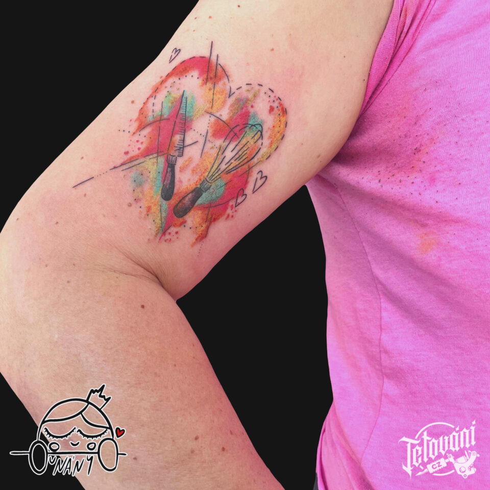 Tetování srdce, předměty, kuchyňské nádobí na rameno