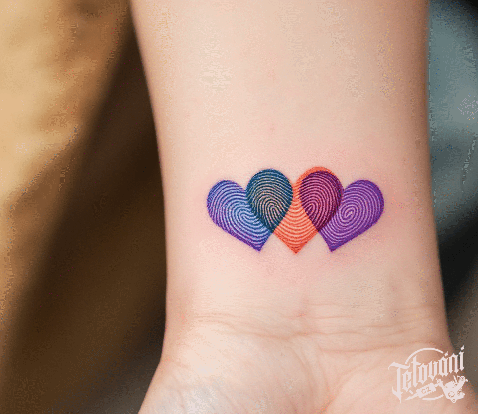 Tetování srdce pro tři na zápěstí