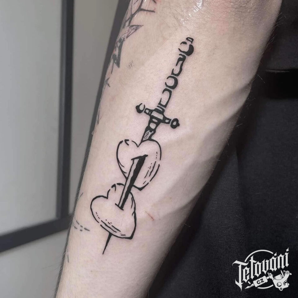Tetování srdce probodnuté mečem na předloktí