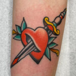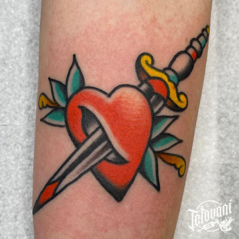 Tetování srdce probodnuté mečem na předloktí