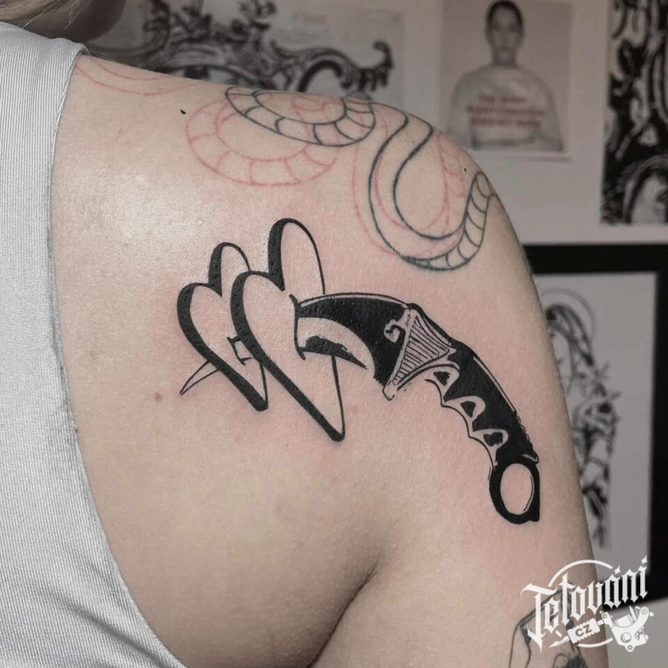 Tetování srdce probodnuté nožem na lopatku