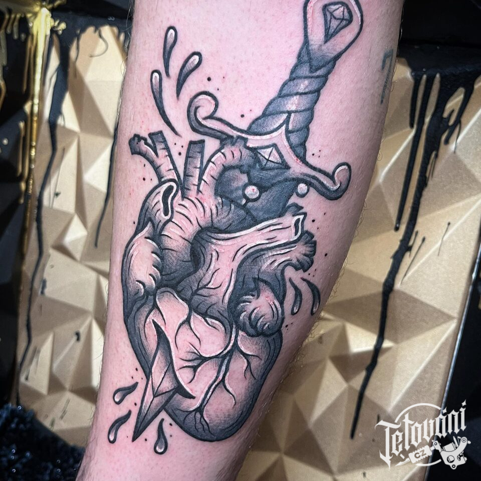 Tetování srdce probodnuté srdce na lýtko