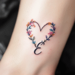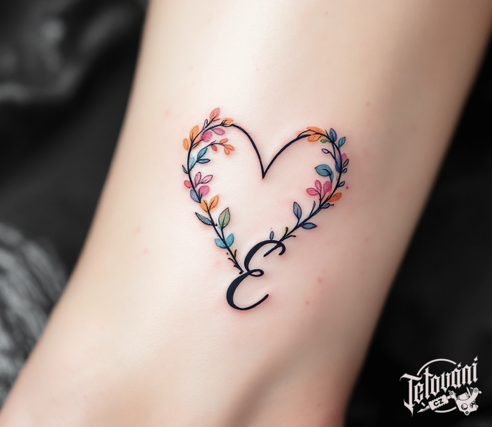 Tetování srdce s květinami a srdce s písmenem na předloktí