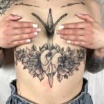 Tetování srdce s květinami pod prsa