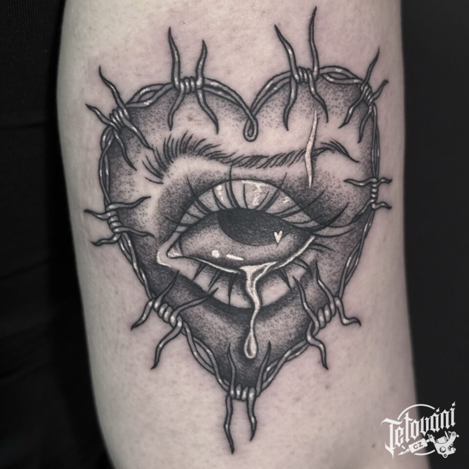 Tetování srdce s okem na paži
