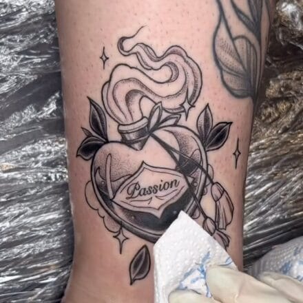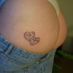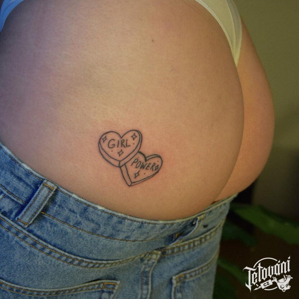 Tetování srdce s písmem a nápisy na zadku