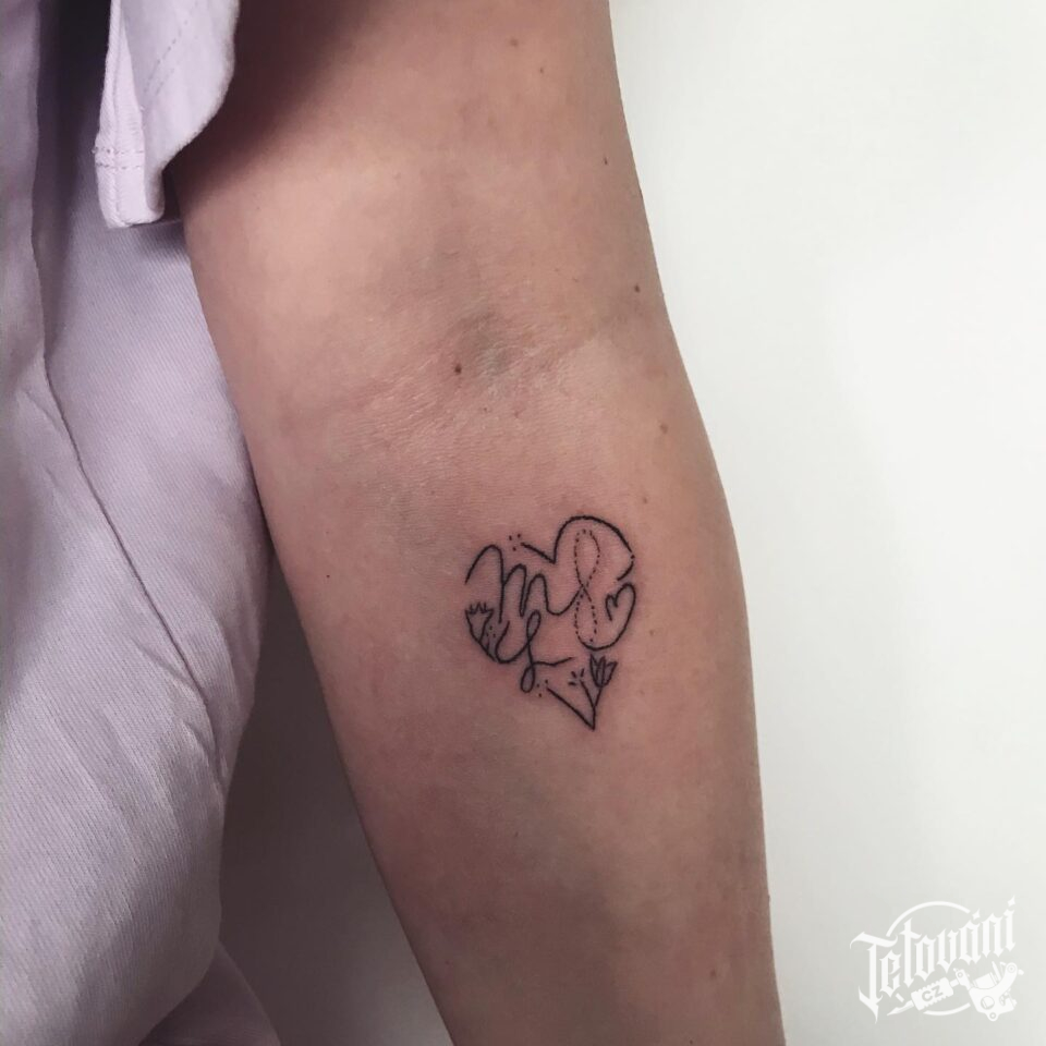 Tetování srdce s písmem na předloktí