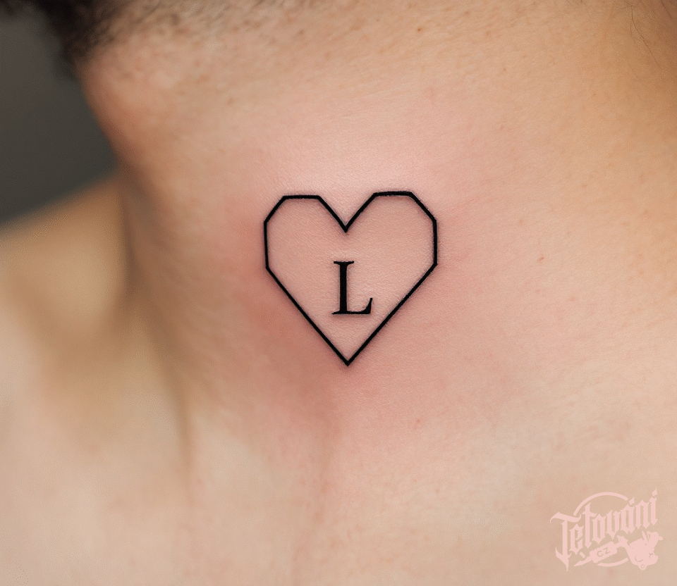 Tetování srdce s písmenem L, srdce na krk